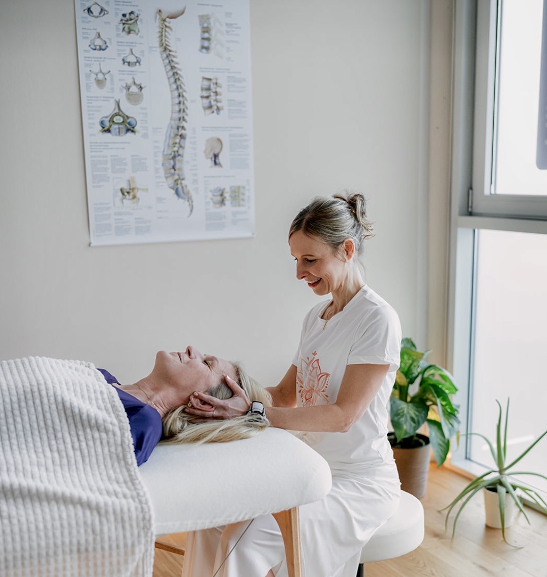 In einem großen Bewegungsraum und einem Behandlungsraum zum Wohlfühlen darf nun ein breit gefächertes Bewegungsangebot rund um die Gesundheit der Wirbelsäule Platz nehmen: